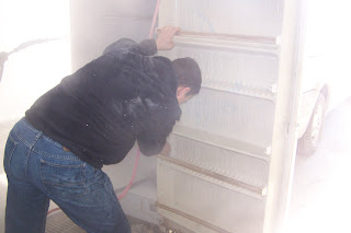 We were giving a freezer away, but it was WAY disgusting! Tom had the idea to take the boys to the car wash to wash the freezer! This really cracked me up!